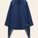 Corte fluido, ligera y con caída perfecta. Los flecos en espalda y mangas le dan ese punto western meets feria, pero en versión sofisticada y muy 2026.