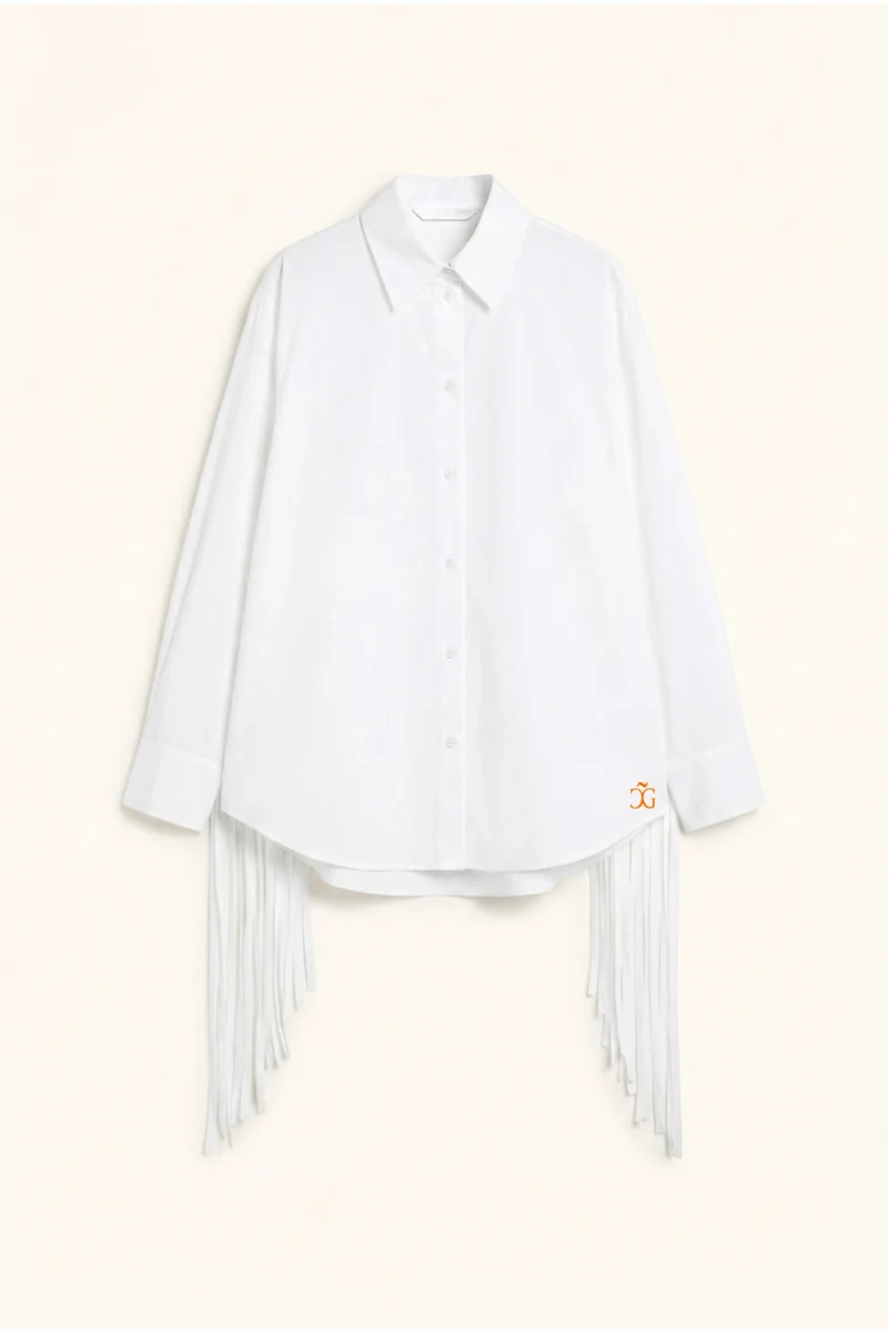 Blanco, vibra luminosa y una espalda llena de flecos que se mueven contigo. Porque sí, esta prenda está hecha para girar, caminar con actitud y entrar en cualquier sitio como si fuera tuyo.