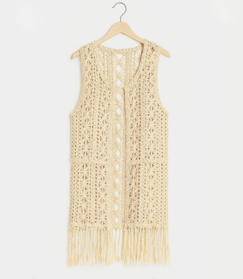 Chaleco calado de crochet con flecos – Mujer